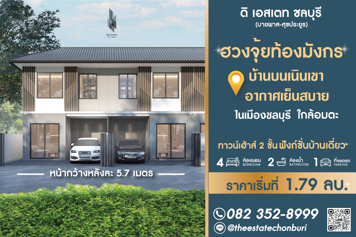 THE ESTATE CHONBURI บายพาส-ศุขประยูร บ้านสวยในเมืองชล เดินทางสะดวก เข้า-ออกได้ทั้งบายพาส และศุขประยูร เริ่มเพียง 1.79 ลบ.*